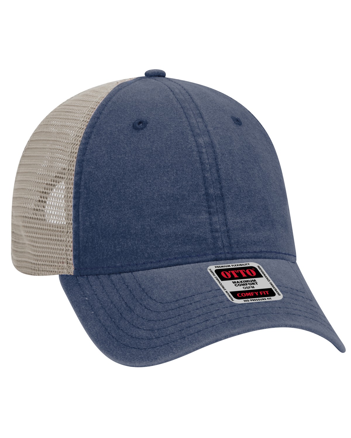 Front: 100% Cotton  Back: 100% Polyester Mesh