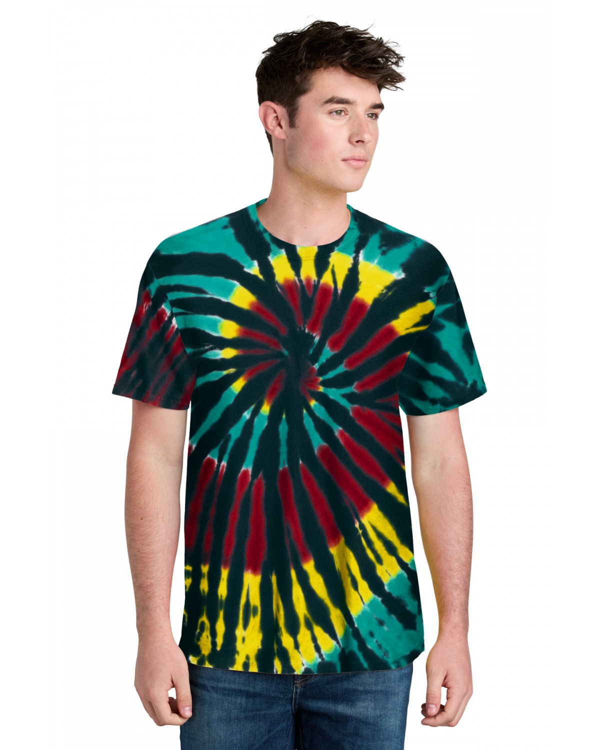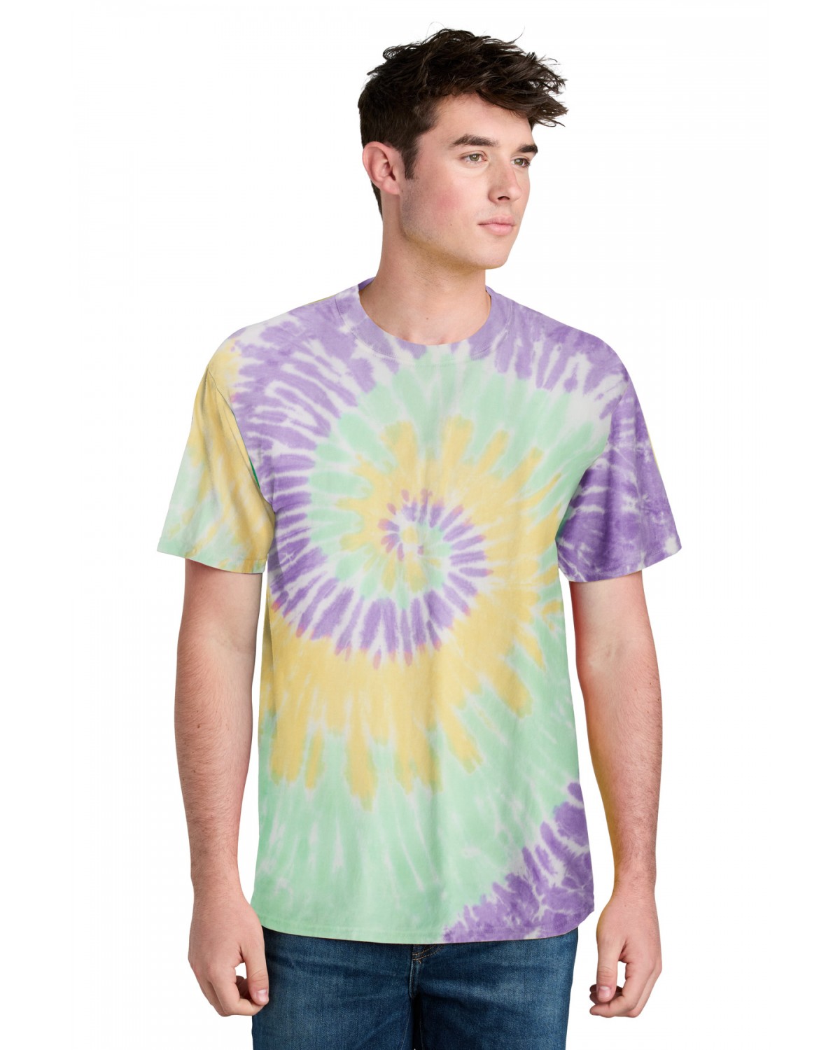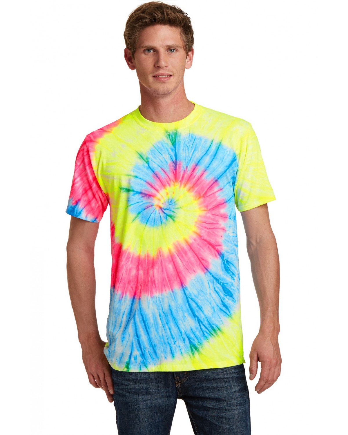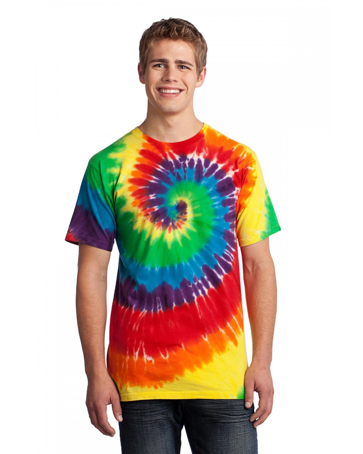Colorfully cool, this groovy tee is a surefire way to stand out from the crowd. Starting with a prepared-for-dye blank (which has no optical brighteners or bleaches) and cotton thread ensures vibrant color and a standard fit.