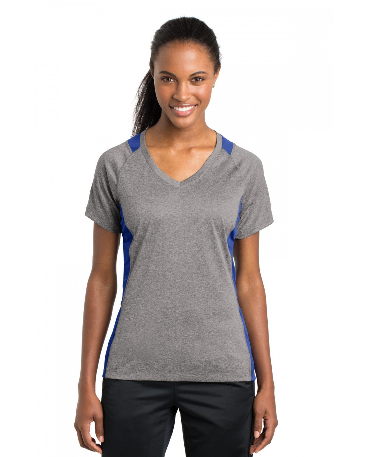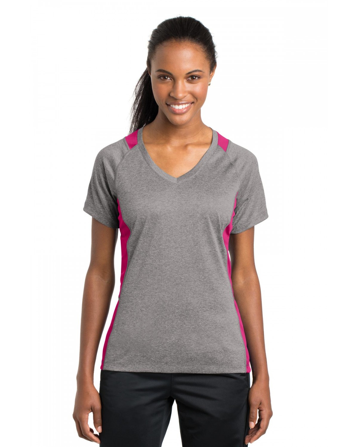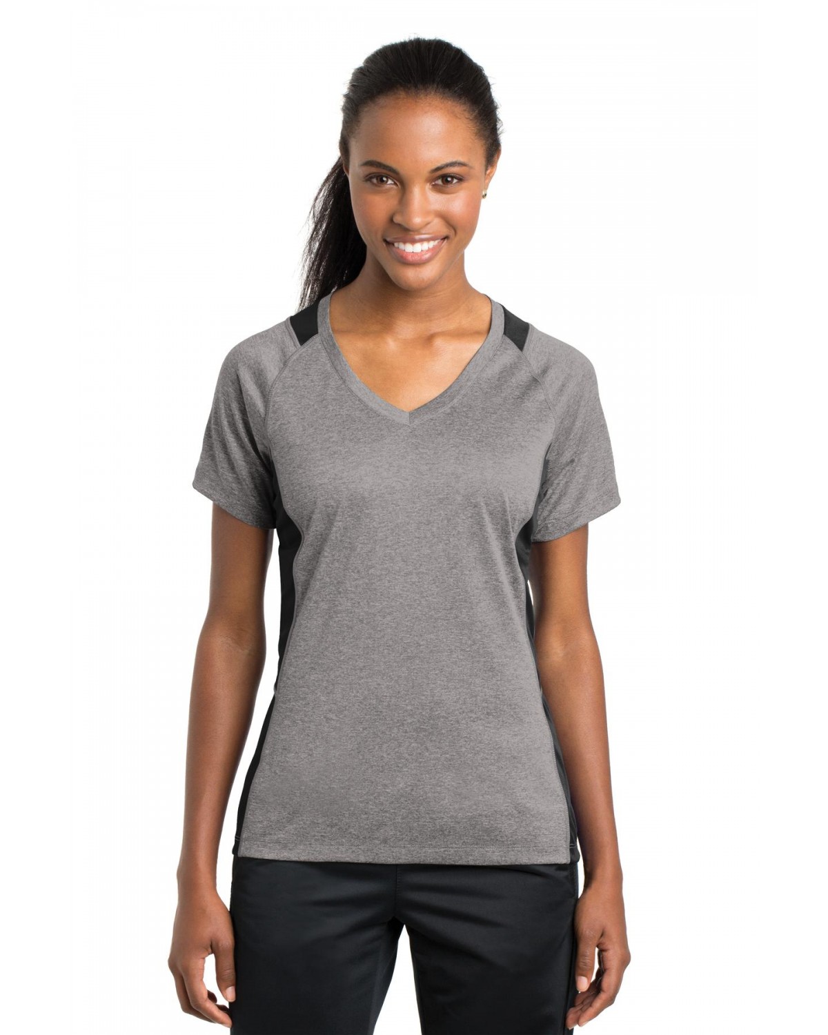 Sport-Tek LST361 Ladies Heather Colorblock Contender V-Neck Tee